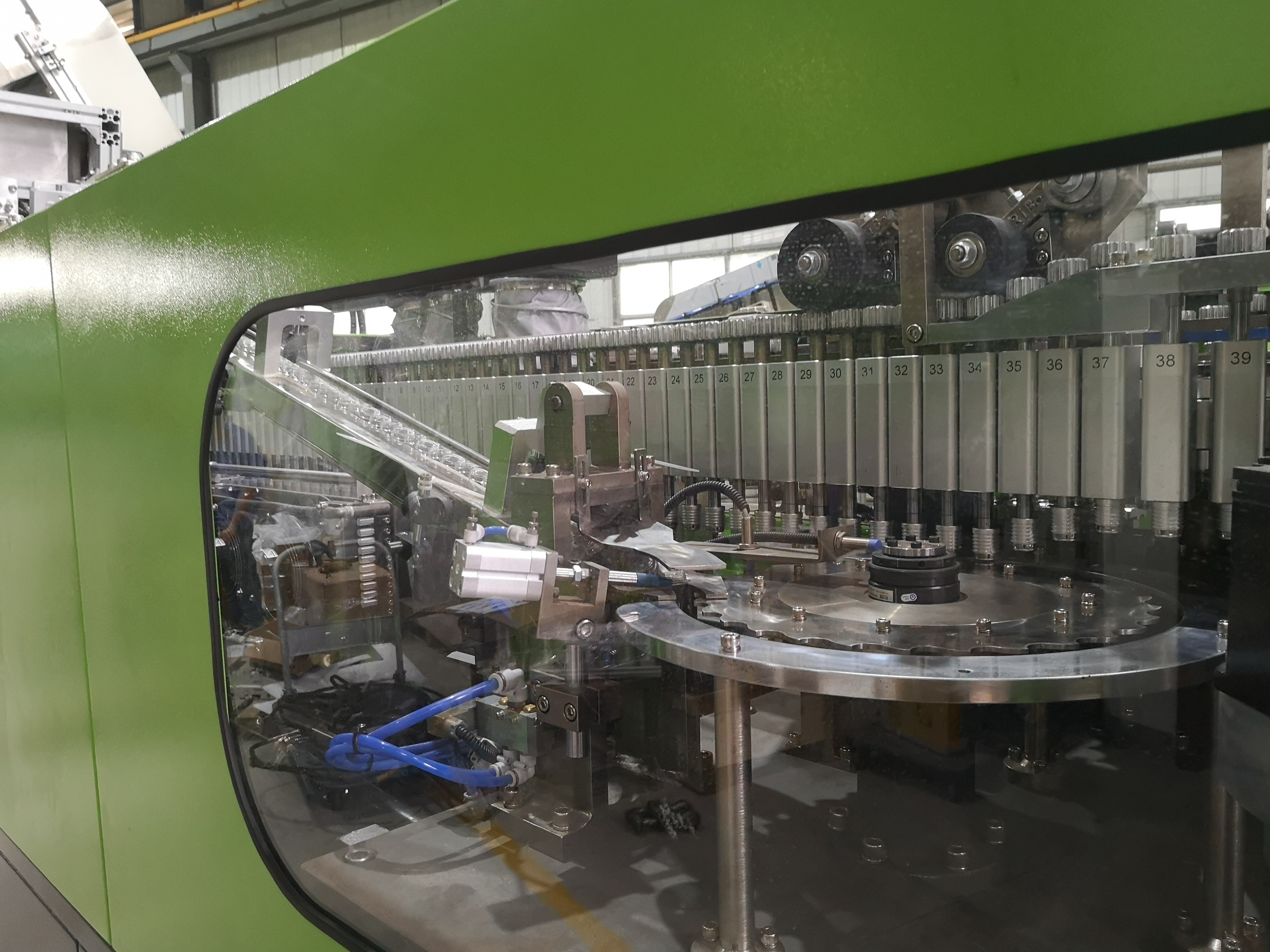 1. Dahili sürekli dönen besleme sistemi, işgal edilen alanı etkili bir şekilde azaltır.Preform pozisyonunun tutarlılığı